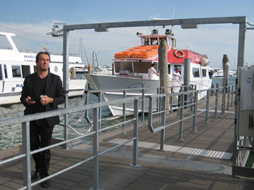 Saturday, July 16: Villa Giustinian in Portobuffolè, Veneto. Very hot this morning. Today the group of 40-odd buyers and journalists moves to Venice. Last night I met a South African jockey who races in Hong Kong, named Douglas Whyte, who is very famous in racing circles, having won the national championship four years in a row. He owns a property in Montecastello di Vibio (Umbria) where he makes a Sagrantino, Cabernet Sauvignon and Merlot.![]()