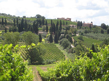 Bottega's Montalcino vineyard and winery (at the top of the hill)