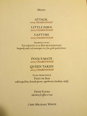 Vaucluse menu for CheckMate wines – a world premiere tasting