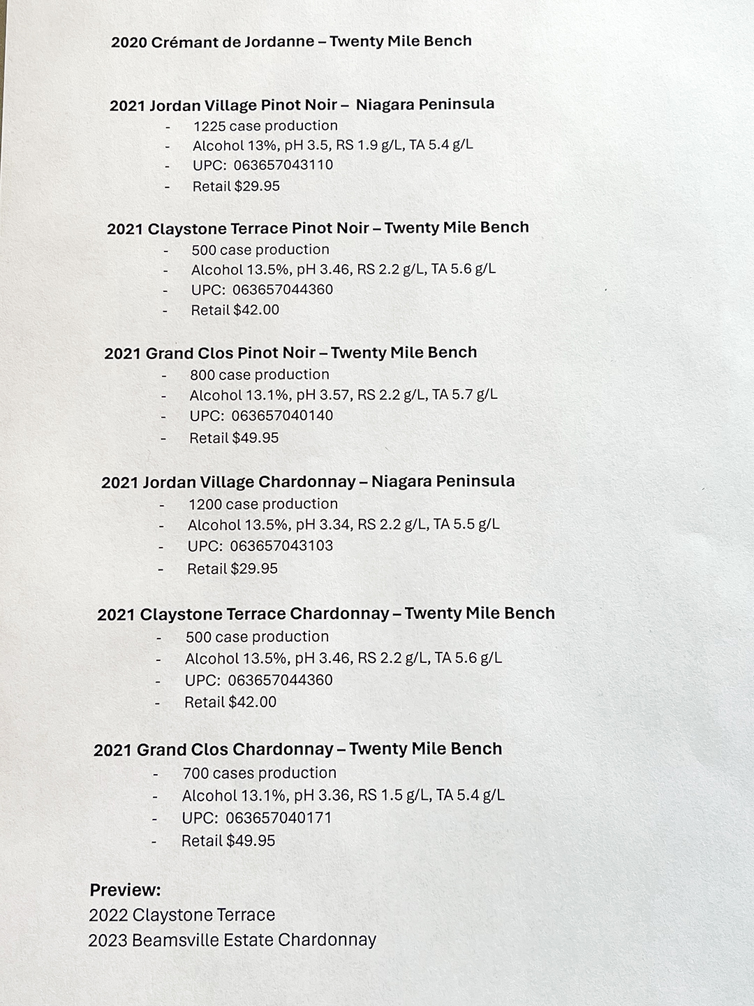 After the tasting (and a charcuterie plate of local produce), we repaired outside for a barrel tasting in the driveway of the 2022 Claystone Terrace Chardonnay and the 2023 Beamsville Estate Chardonnay conducted by Thomas and Arterra’s Brand winemaker Philip Brown. Exciting wines.