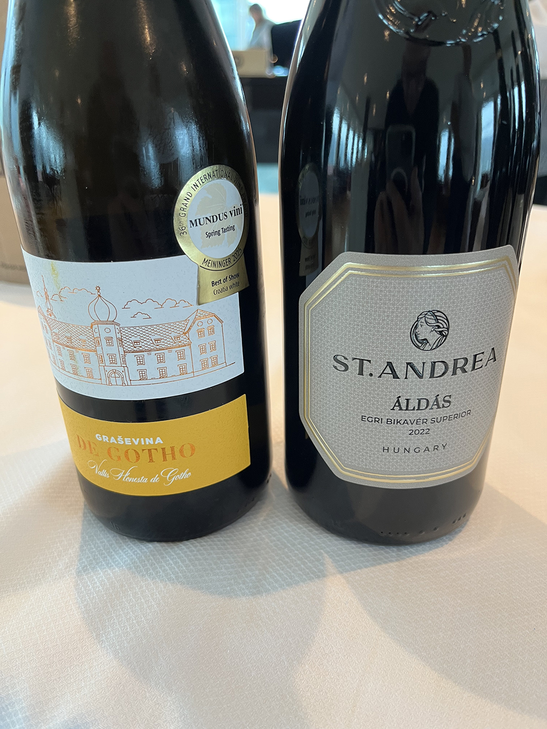 In the evening, I conducted my second tasting for the passengers: Kutjevo De Gotho Graševina (Riesling Italico) and St. Andrea Áldás Egri Bikavér (Kekfrankos).
