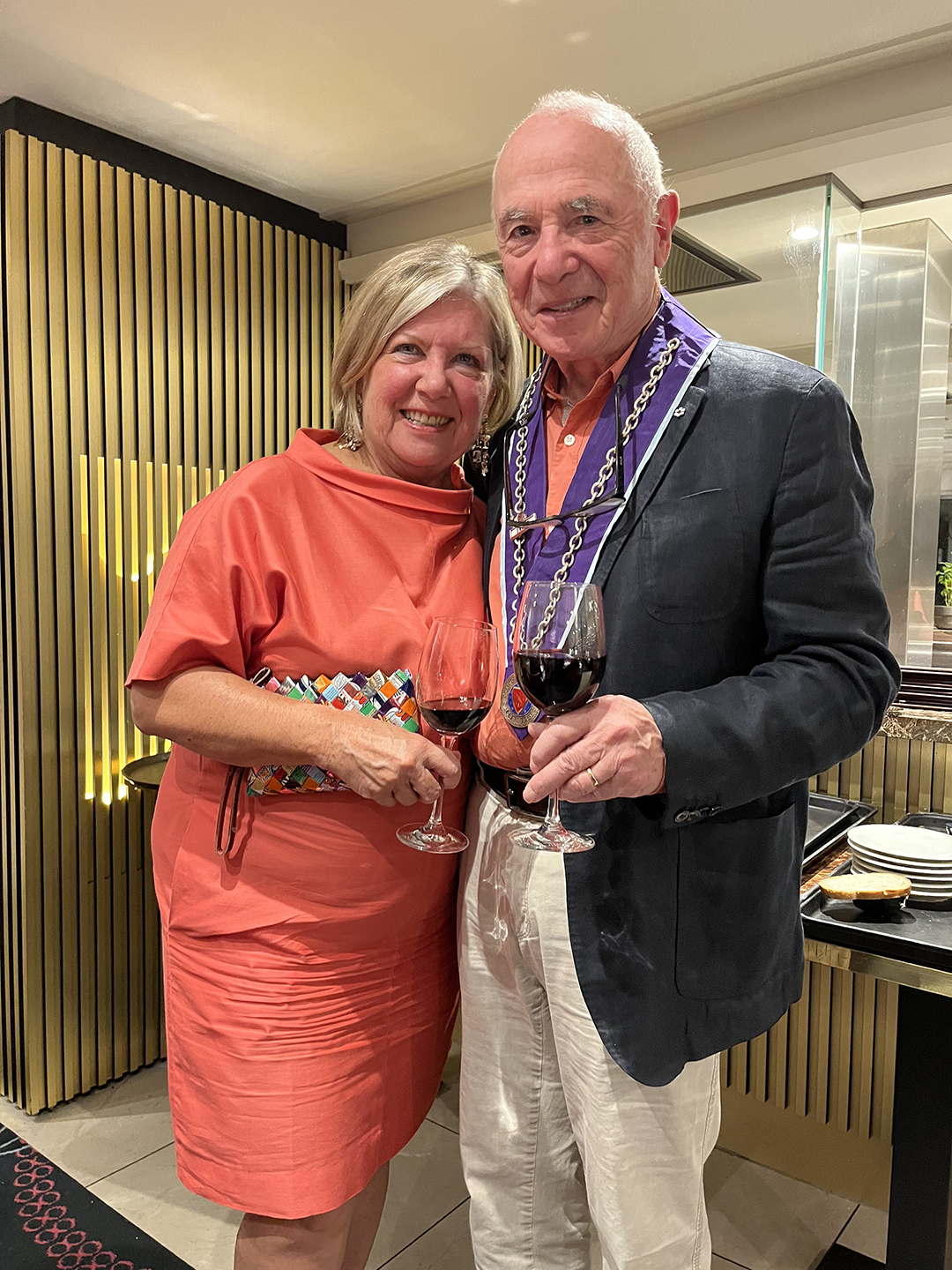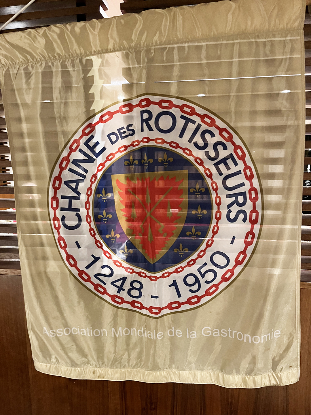 (La Confrérie de la Chaîne des Rôtisseurs is an international gastronomic society founded in Paris in 1950. It is one of the oldest gastronomic societies in the world. AmaWaterways is the only river cruise designated by La Chaine.) Since Steve Gill and I are members, we were asked to wear our regalia.