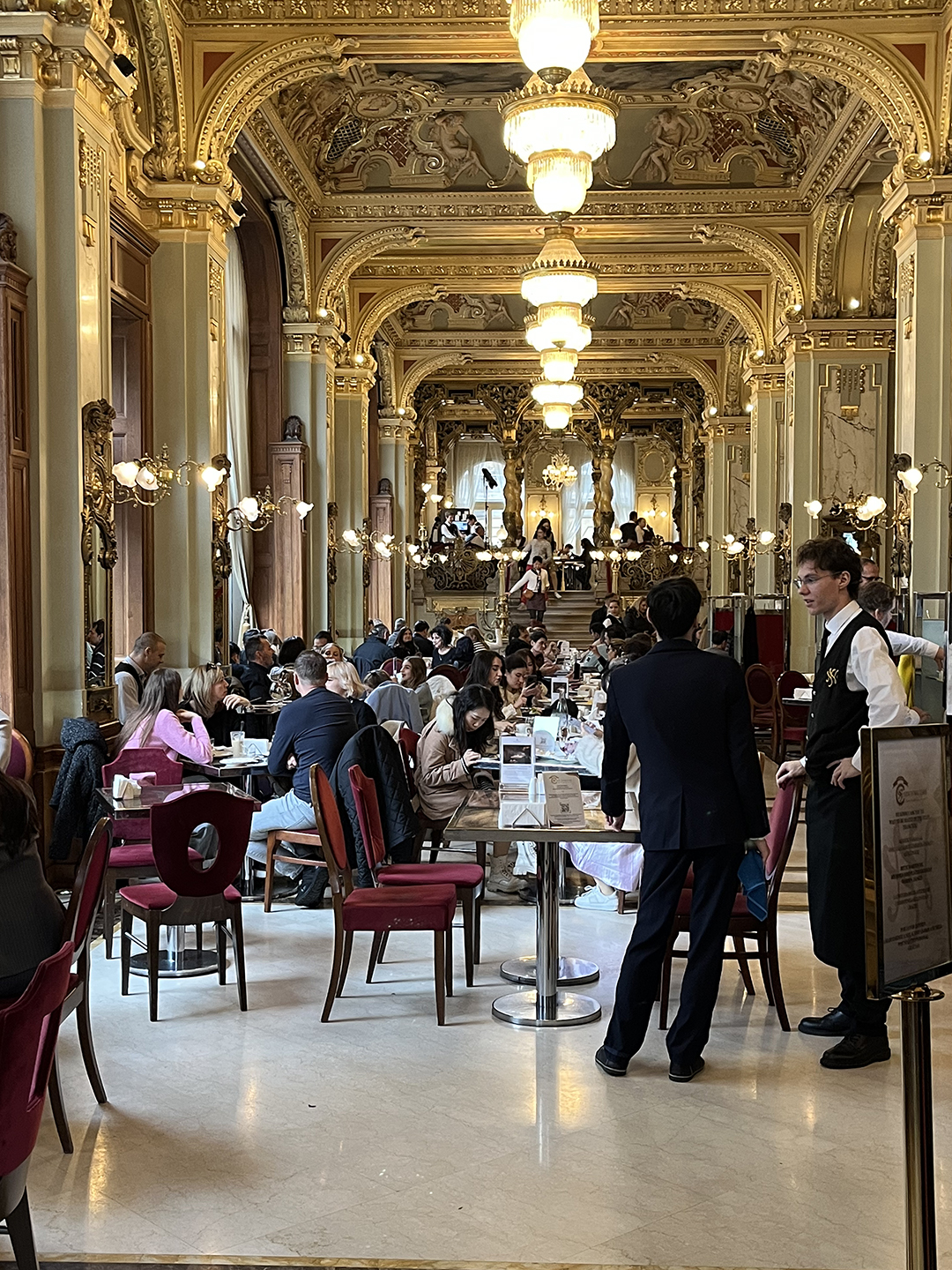 Budapest has a surprising number of shoe stores and Thai massage parlours! Along the Danube are playful bronze sculptures. One place not to miss is the New York Cafe, which bills itself as “The most beautiful cafe in the world” – and it is!